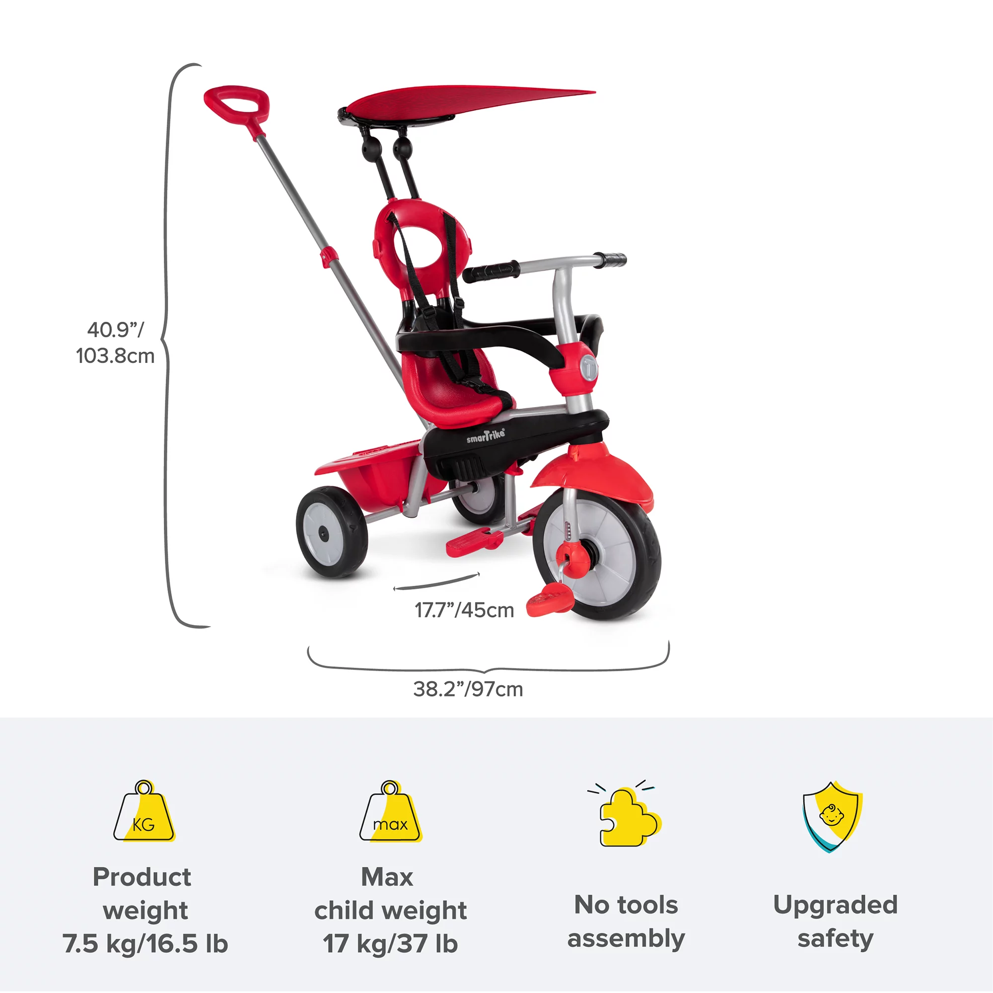 - Removable sun canopy protects your toddler by providing shade when riding out in the sunshine