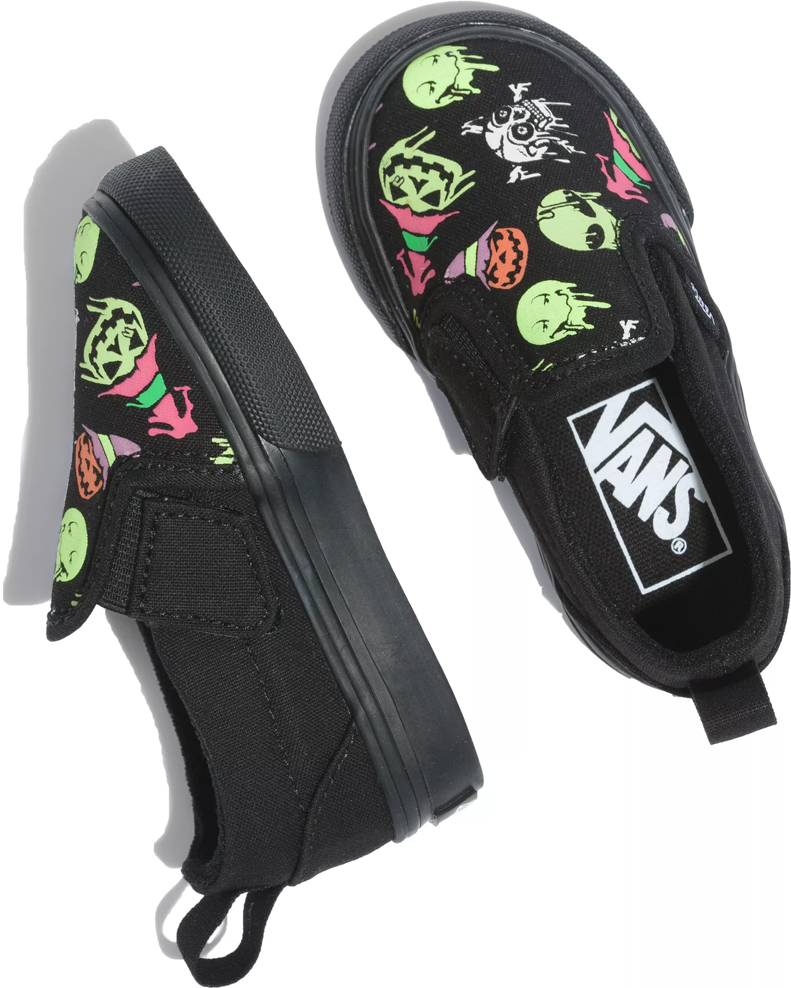 - Features jack-o-lanterns, witch hats, skeletons, and trippy smiley faces
